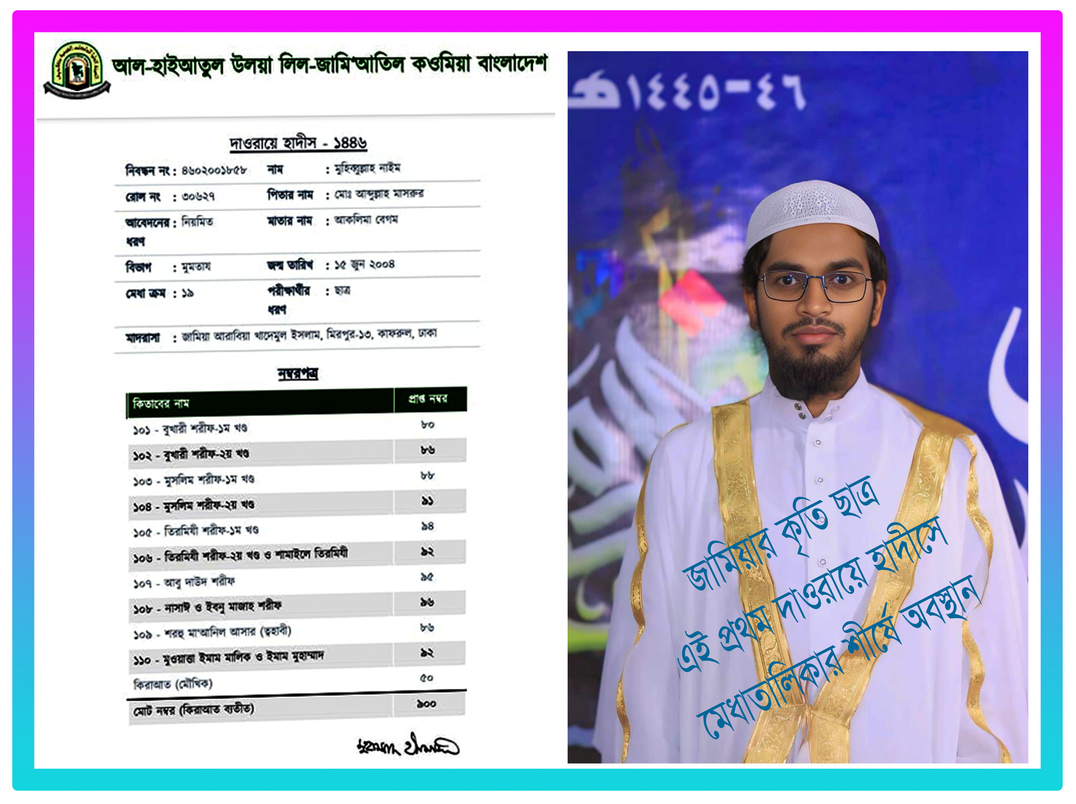 জামিয়ার কৃতি ছাত্র মোঃ মুহিববুল্লাহ নাঈম